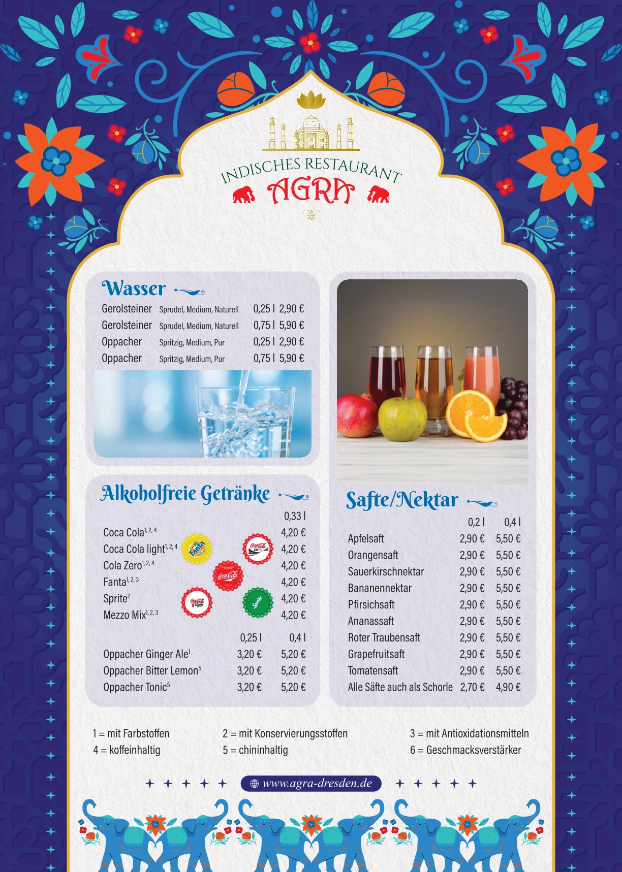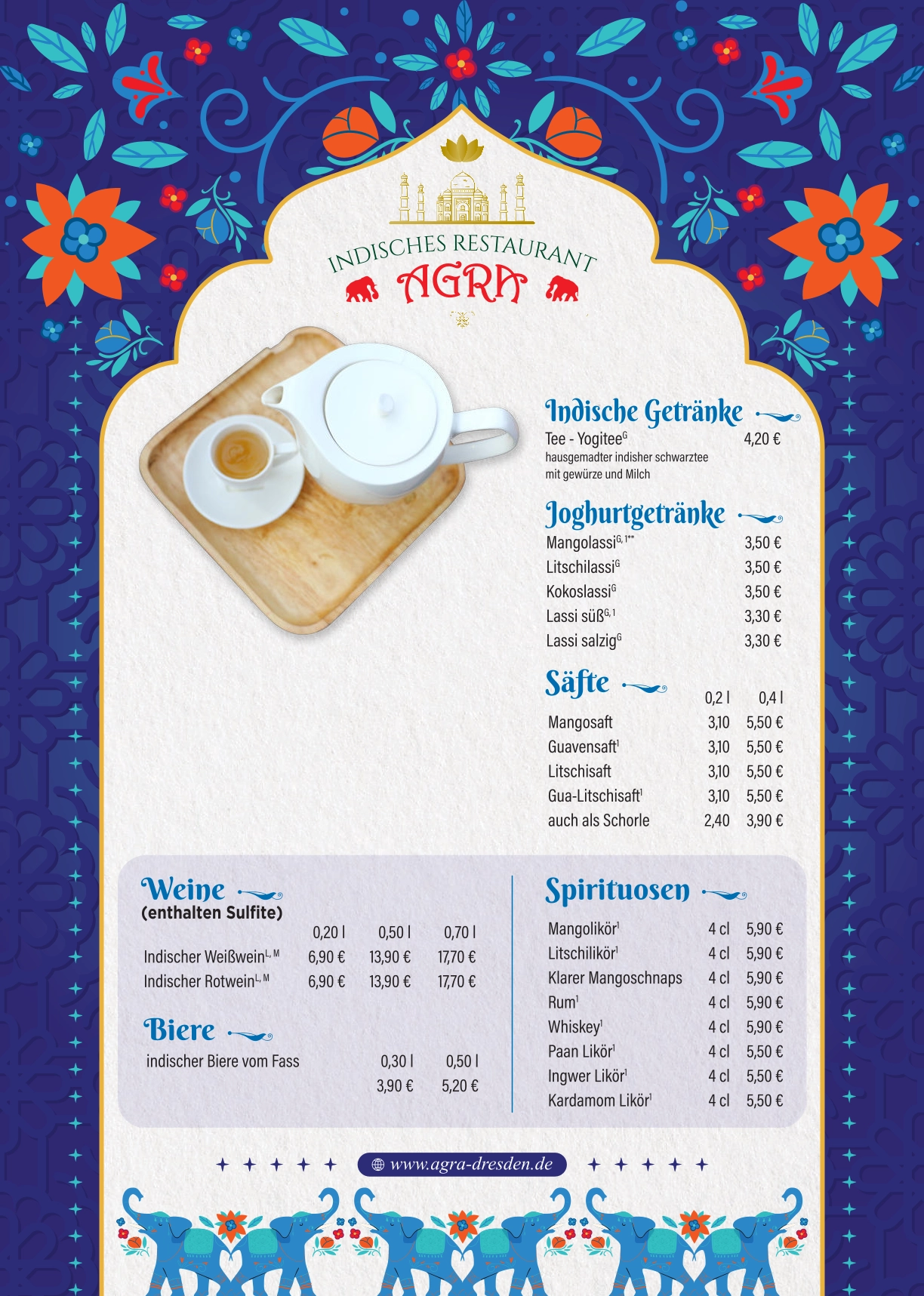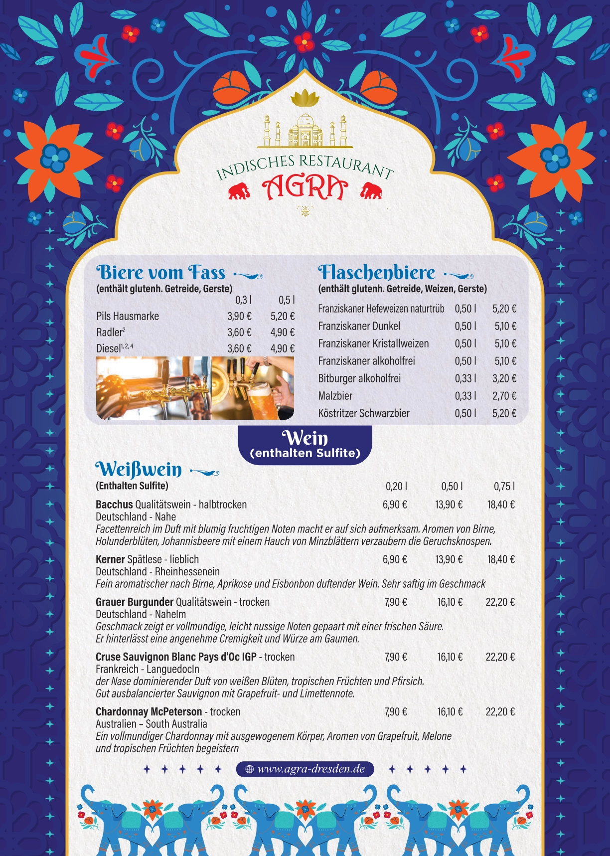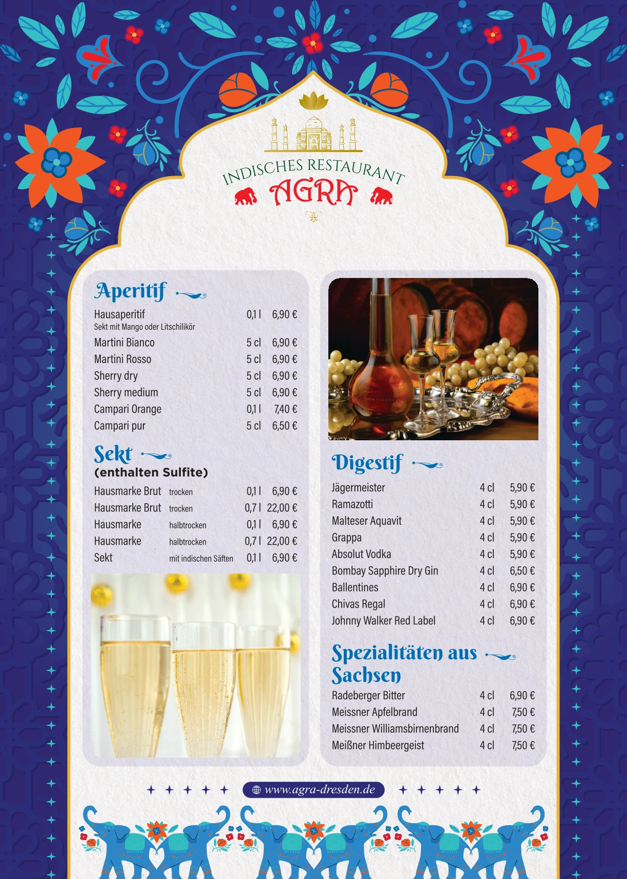UNSERE SPEISEKARTE Navigieren Sie sich durch unsere Speisekarte oder laden Sie diese runter. Speisekarte als PDF downloaden Schnellkontakt: ÖFFNUNGSZEITEN: TÄGLICH 11:00 bis 14:30 Uhr und 17:00 bis 23:00 Uhr ADRESSE: Eilenburger Str. 16 01309 Dresden 0351-8365222 info@agra-dresden.de Finden Sie uns auf: